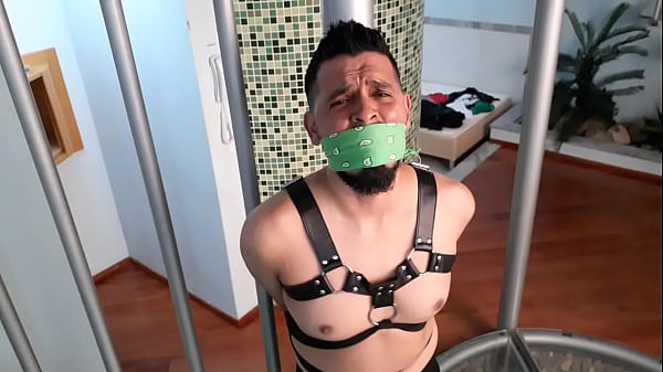 Big Dog tied up gagged for the first time in bondage 2 min