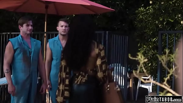 PlainTaboo.com - Busty brunette threesome fucks workers